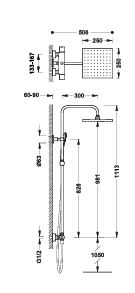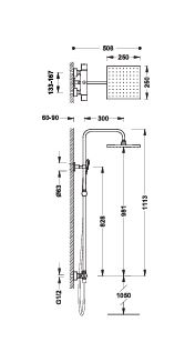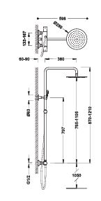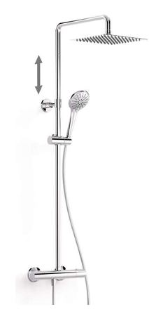 Ensemble de robinet thermostatique mural à deux voies, alliant fonctionnalité et design. Il comprend un inverseur intégré au régulateur de débit, une barre de douche télescopique réglable en hauteur, un pommeau de douche orientable en inox 250x250 mm, un support coulissant et orientable pour douchette à main, une douchette anticalcaire Ø110 mm avec 3 jets au choix, ainsi qu’un flexible finition satin. Parfait pour une douche personnalisée et confortable. Ce modèle est aussi disponible en noir.